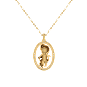 A spiritually uplifting gold pendant featuring a detailed depiction of Lord Hanuman within a diamond-studded oval frame. A perfect blend of devotion and elegance.