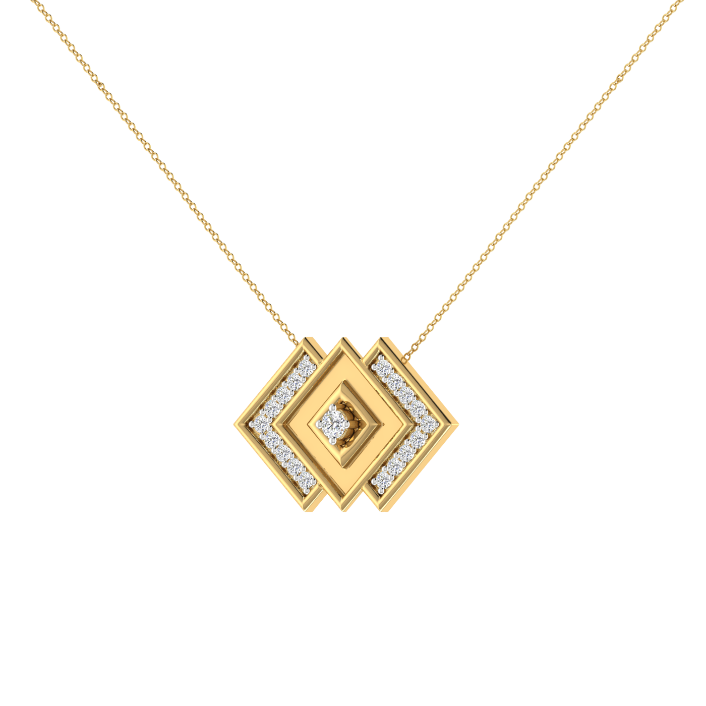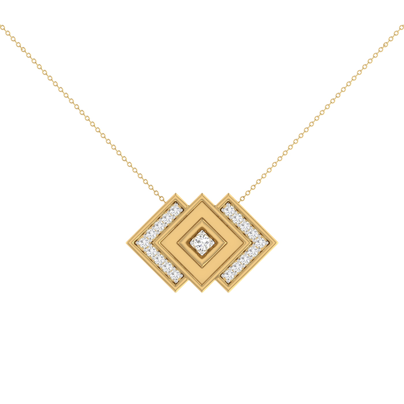 A sophisticated layered square pendant with sparkling diamond accents. This gold necklace exudes contemporary charm and is a perfect balance between minimalism and luxury.