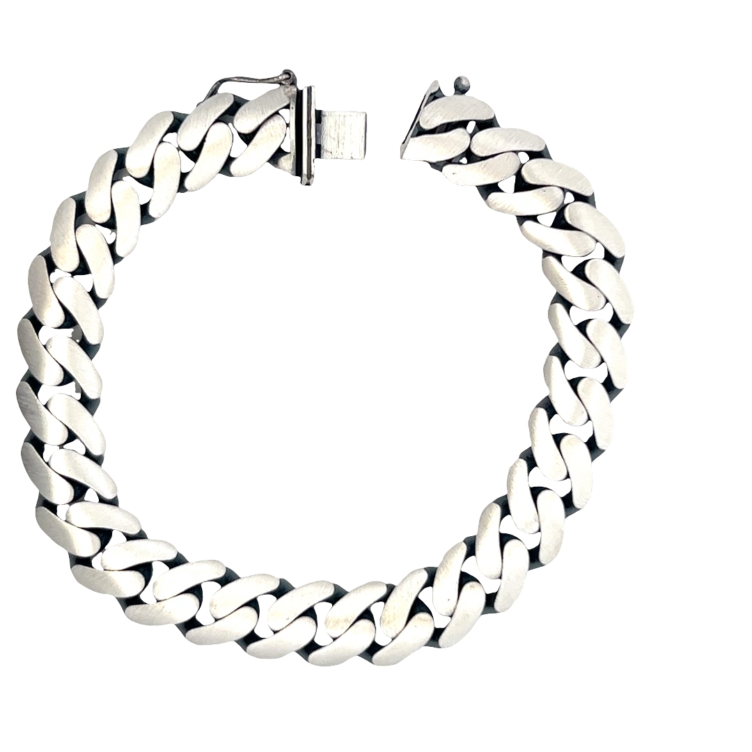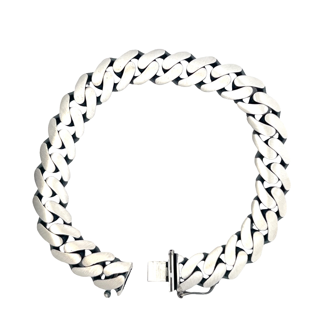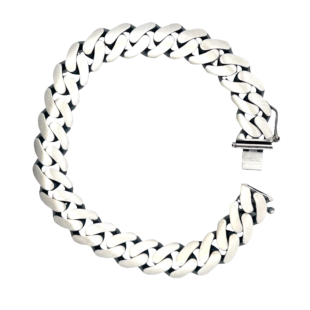 Embrace bold style with this striking curb chain bracelet, crafted from sleek white gold plated silver. This robust bracelet exudes a modern aesthetic. The secure clasp ensures a comfortable and confident wear, making it a versatile addition to any jewelry collection.