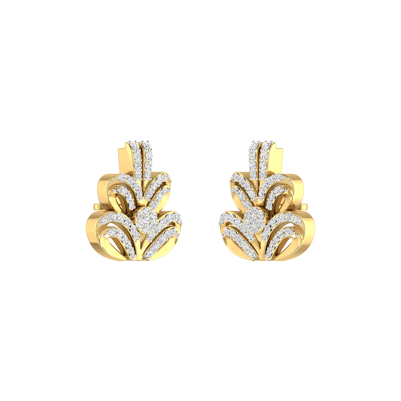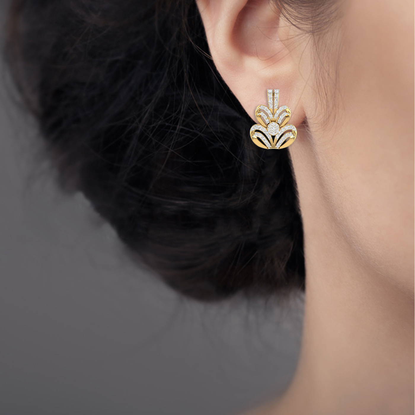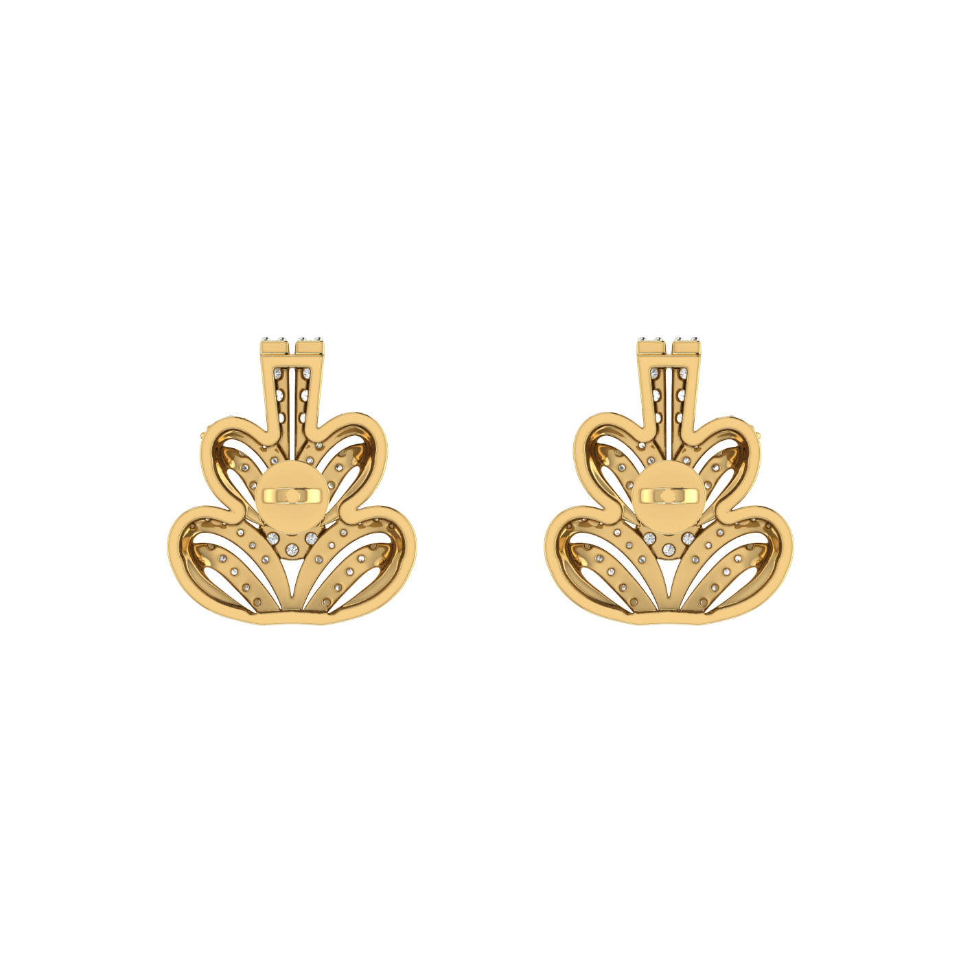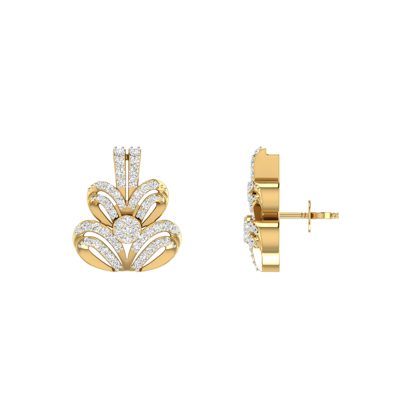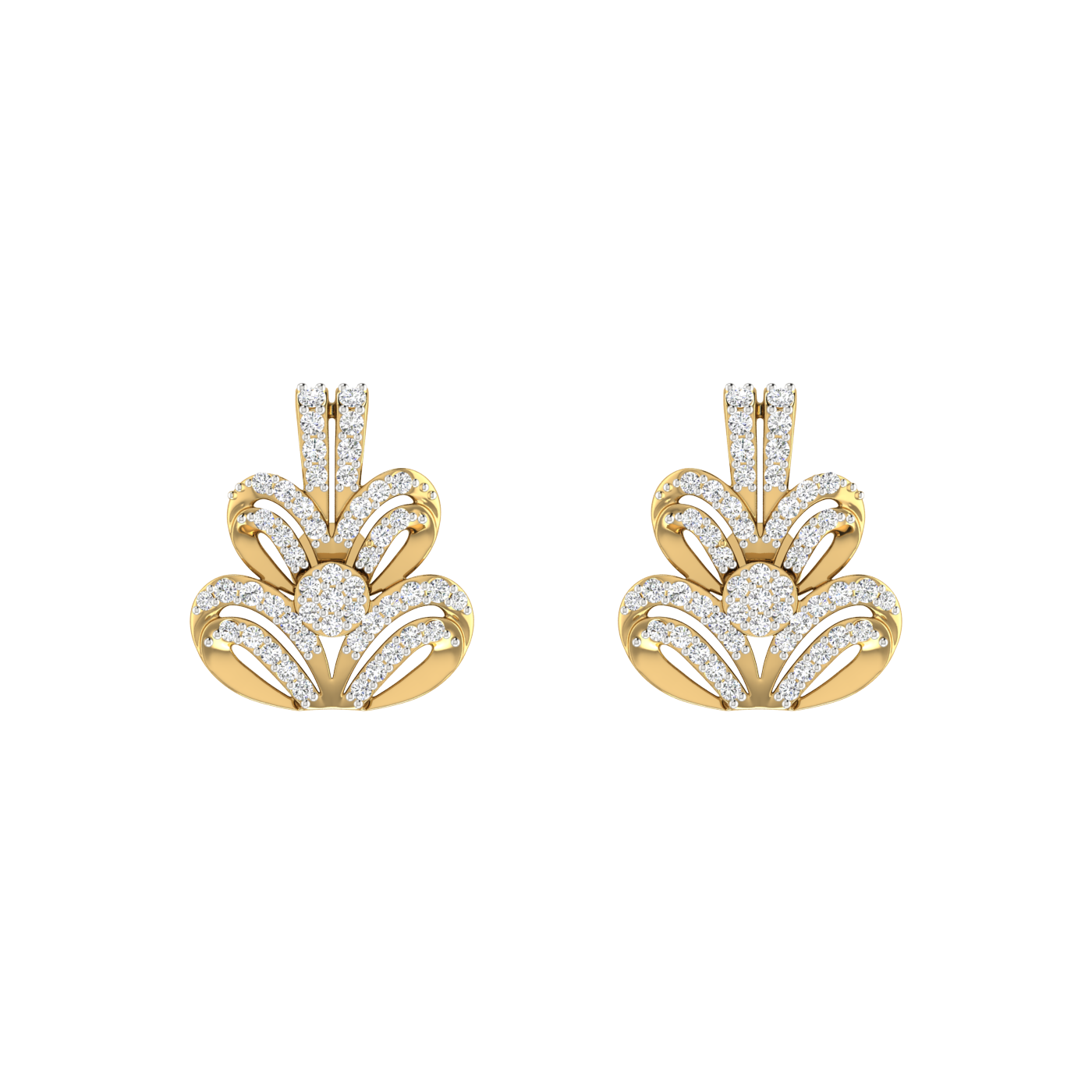Inspired by the beauty of the lotus flower, these gold earrings are encrusted with diamonds to create a royal and ethereal appeal, perfect for traditional and modern outfits.