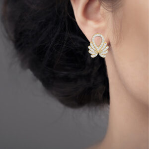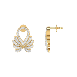 Inspired by floral elegance, these gold earrings showcase a sparkling petal-like structure adorned with diamonds, offering a graceful and stylish look for special occasions.