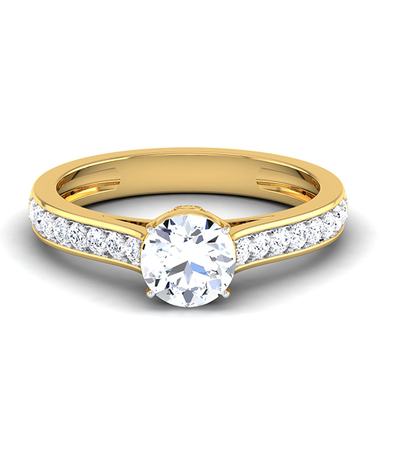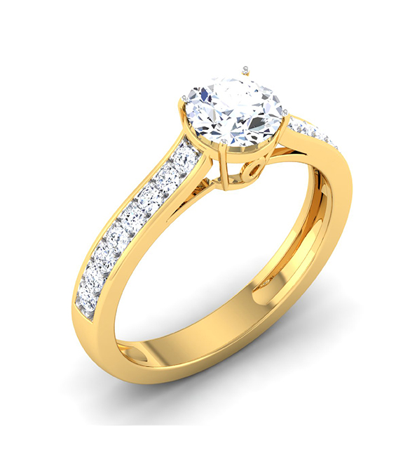 Exuding elegance and brilliance, the Golden Radiance Solitaire ring is a timeless symbol of love and commitment. Crafted in luxurious yellow gold, this stunning piece features a dazzling round-cut diamond at its center, held securely in a classic four-prong setting. The band is adorned with a series of sparkling accent diamonds, seamlessly blending sophistication with modern charm. Perfect for engagements, anniversaries, or special occasions, this ring captures the essence of everlasting beauty and refinement.