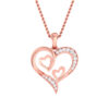 A stunning double-heart pendant combining silver and rose gold with sparkling diamonds. This piece symbolizes the beautiful connection between two hearts.