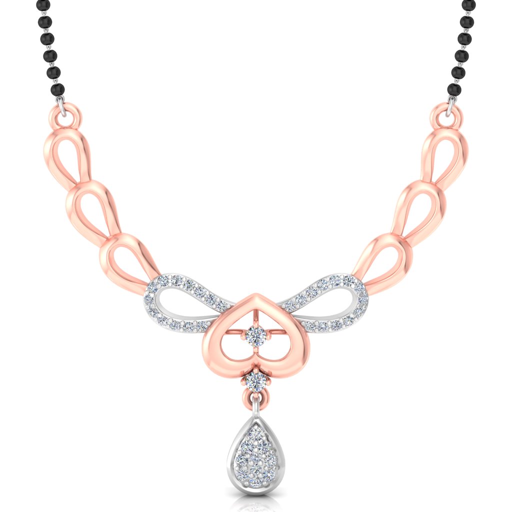 A romantic design with interlinked heart-shaped motifs and sparkling diamond embellishments. The centerpiece teardrop pendant creates a harmonious balance of elegance and love.