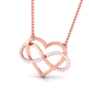 A modern interpretation of love and infinity. This rose gold heart intertwined with diamond-studded infinity bands signifies endless devotion.
