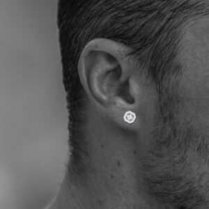 Exude timeless sophistication with these octagonal diamond ear studs. A central floral cluster of sparkling diamonds is encircled by a halo of meticulously set stones, offering brilliance from every angle. Crafted in high-polish white gold, these earrings add a touch of luxury to any occasion.
