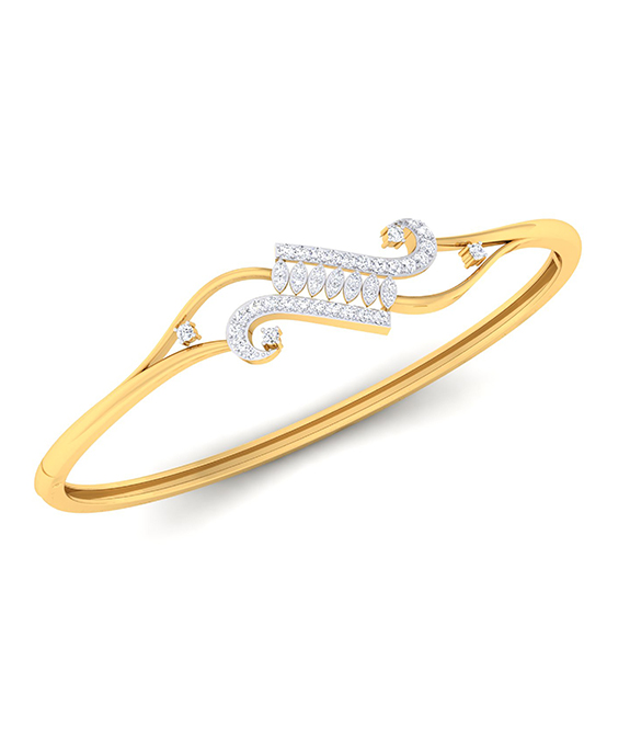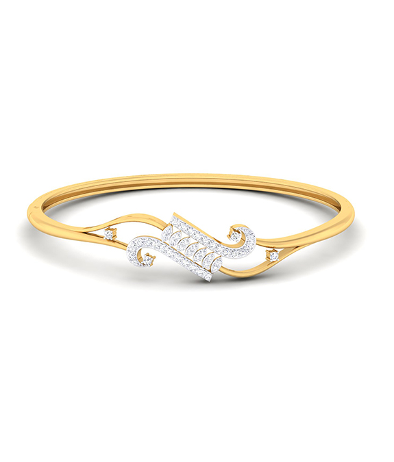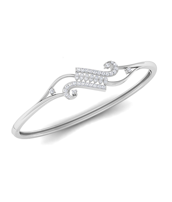 The Celestial Rhythm Diamond Bangle is a modern masterpiece with curved, parallel diamond-studded arcs, representing harmony and movement. The sleek, open-ended structure enhances its contemporary appeal, making it an ideal accessory for women who appreciate modern, minimalistic elegance.