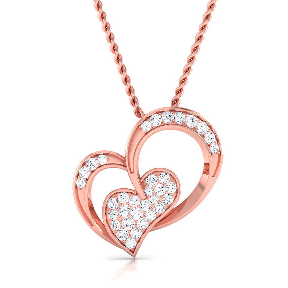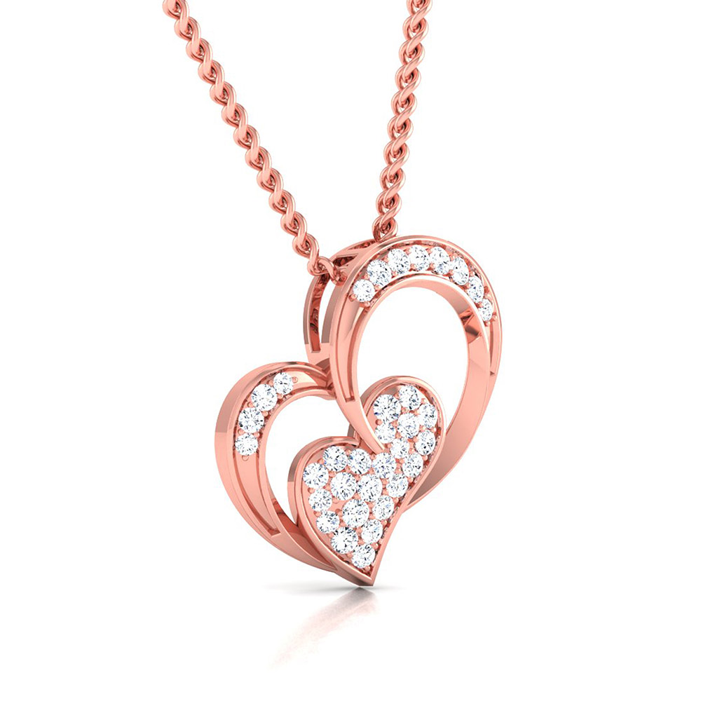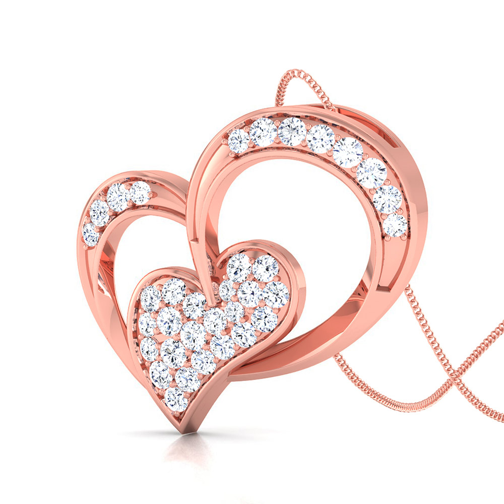 Dual overlapping hearts in rose gold, adorned with sparkling diamonds, create a radiant and dazzling expression of layered love and affection.