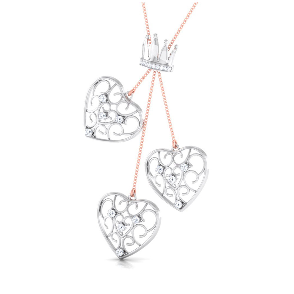 A crown-topped heart pendant in rose gold, adorned with shimmering white stones, representing royalty, loyalty, and devotion.