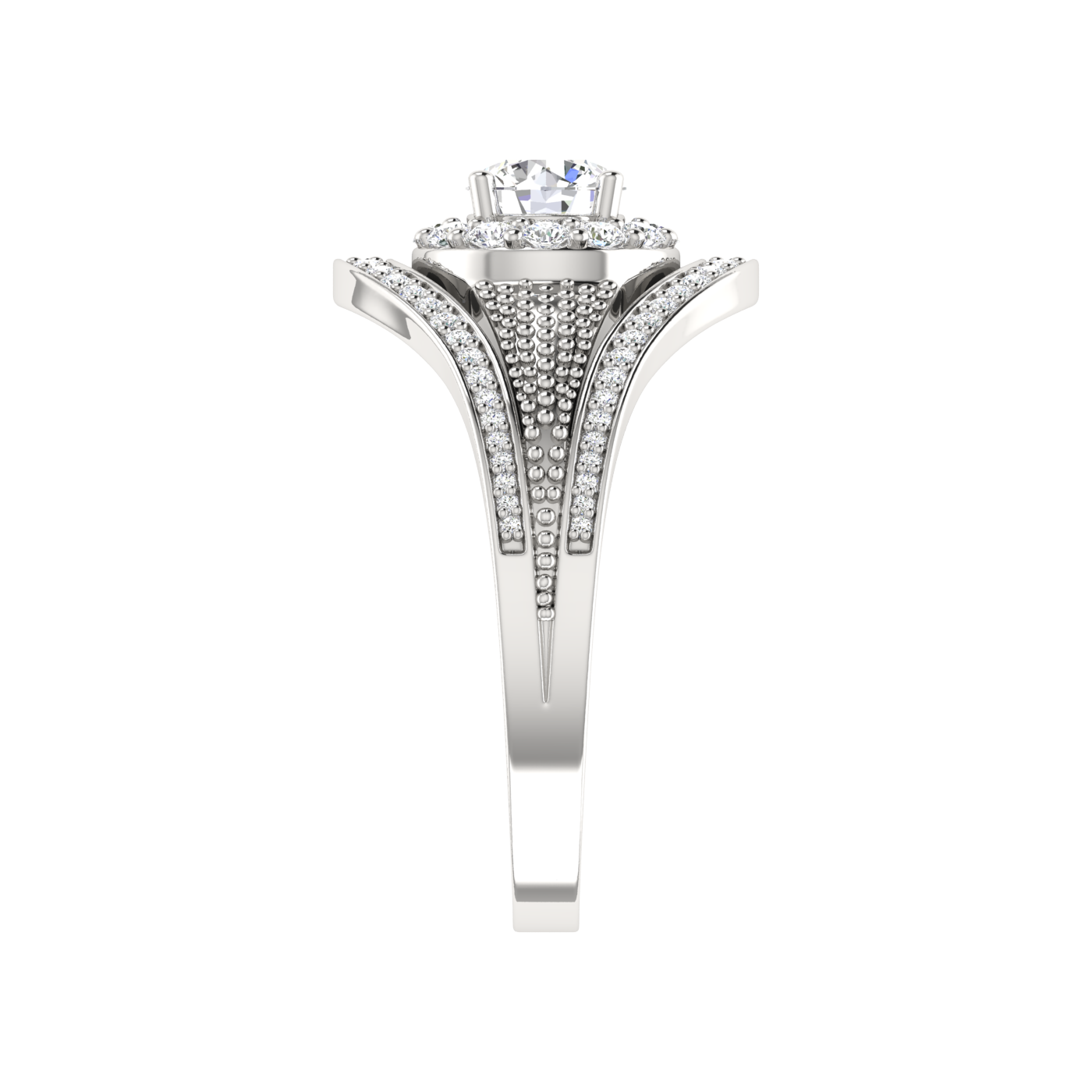 Featuring a round-cut solitaire diamond in a sleek bezel setting, this ring epitomizes contemporary minimalism. The clean, fluid lines of the band enhance the diamond’s brilliance while ensuring durability, making it a sophisticated choice for the modern wearer.