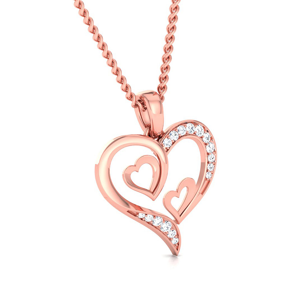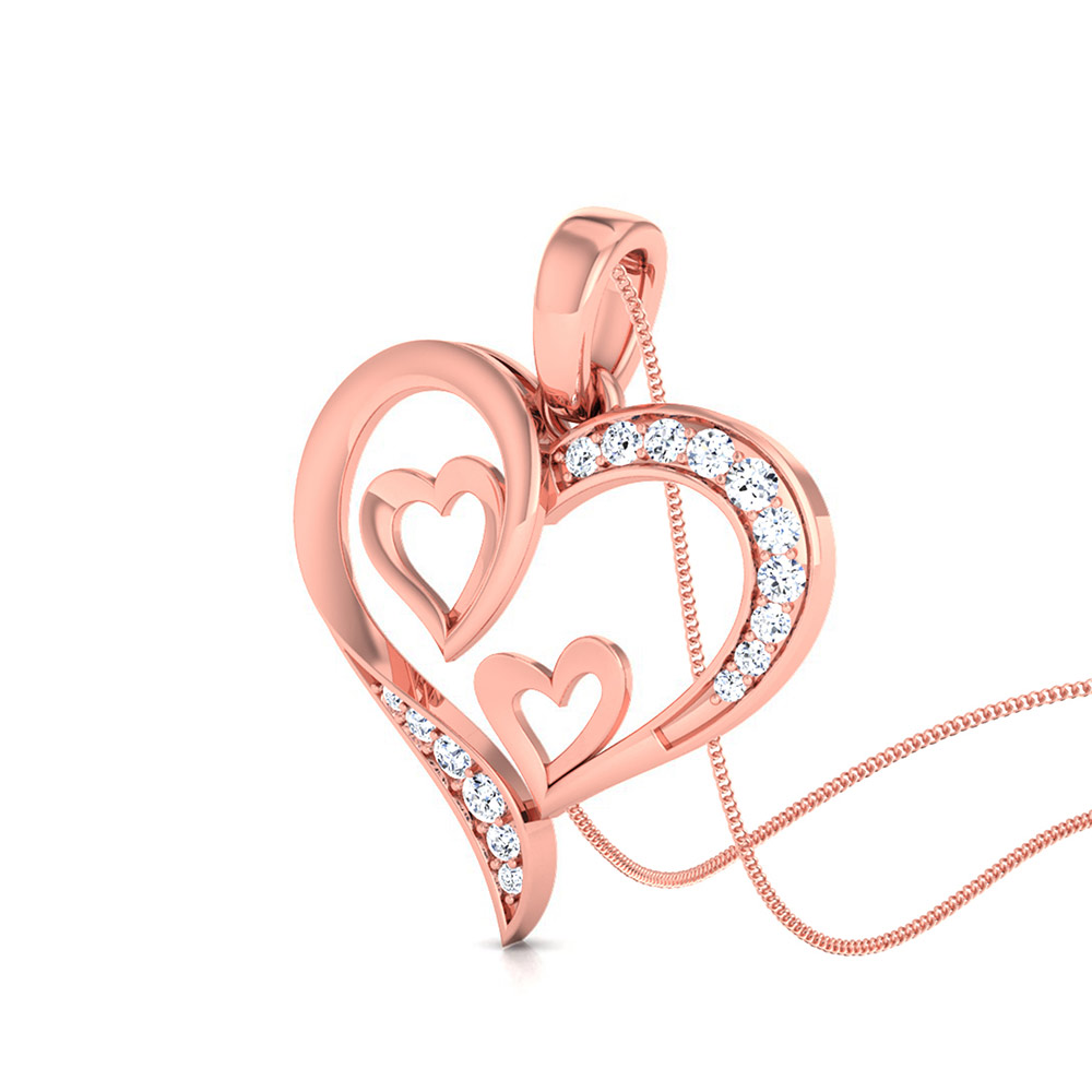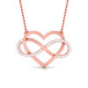 An elegant rose gold necklace featuring three intertwined hearts, adorned with sparkling diamonds. It embodies the unity of past, present, and future love.