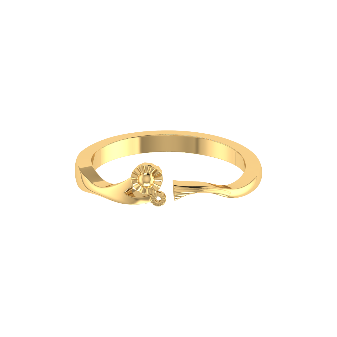 This gold open ring features a delicate sunburst and floral motif, symbolizing radiance and new beginnings. The asymmetrical design gives it a unique, stylish appeal.