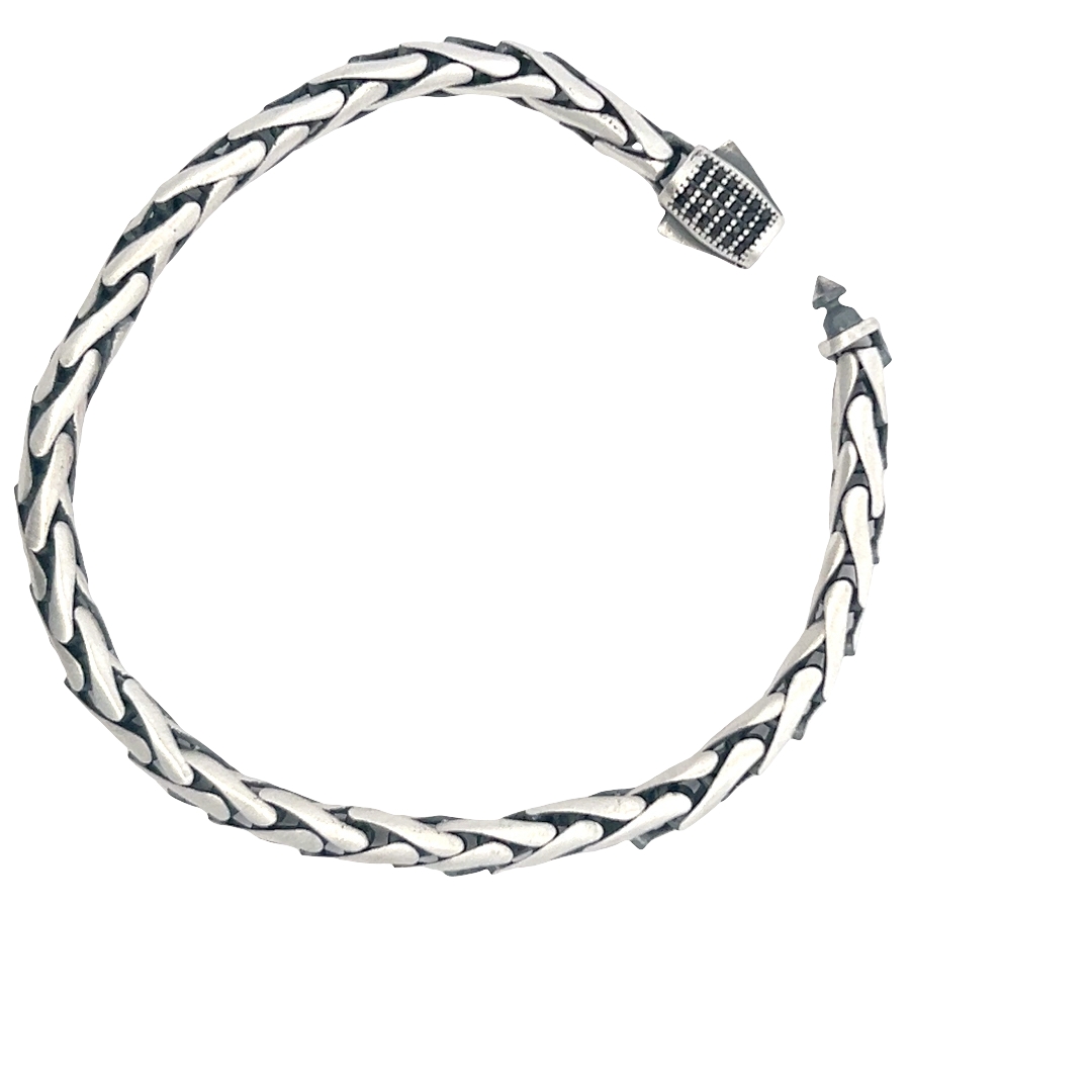 Elevate your style with this intricately crafted silver chain bracelet. The unique design offers a blend of classic and contemporary aesthetics. Perfect for adding a touch of sophistication to any ensemble, this bracelet is a versatile accessory suitable for both casual and formal occasions. Secures with a reliable clasp for comfortable and secure wear.